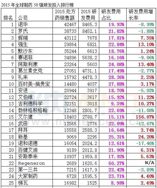 《制药经理人》杂志一年一度的《全球制药企业排名50强》近日出炉,2015年制药行业继续保持了持续稳定的研发投入,合计研发投入高达1111.89亿美元。